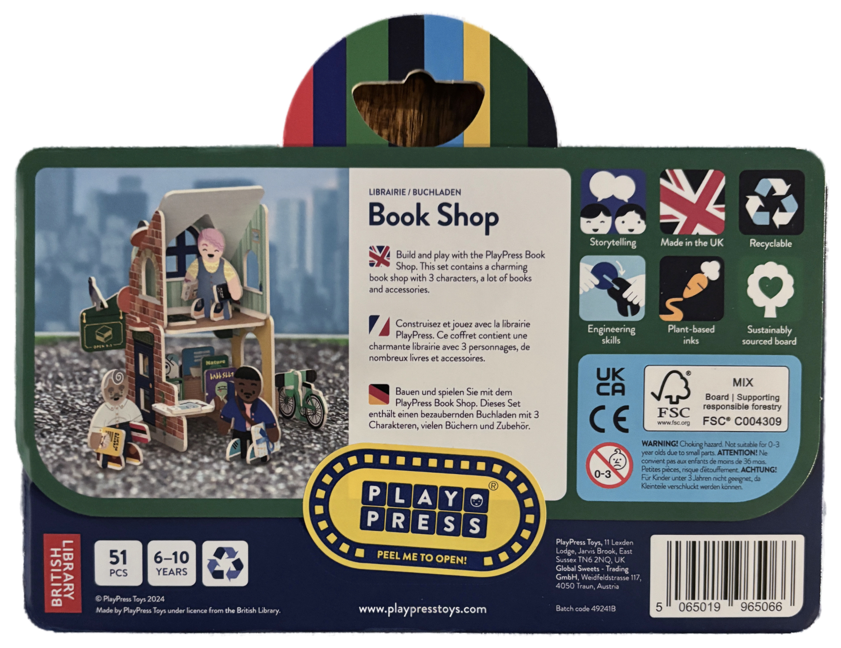 In partnership with the British Library, build and play with 3 characters and lots of interesting books for sale at this charming book store.